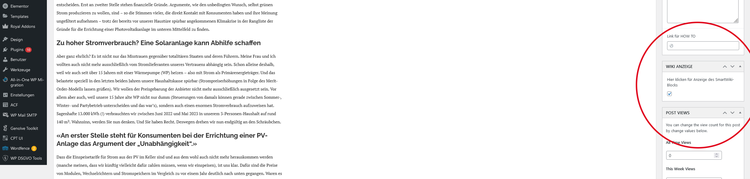 Die Wikianzeige per se kann mittels Anklicken im Artikel aktiviert werden: Somit ist dieses Feld das einzige, dass nicht automatisch nur angezeigt wird.