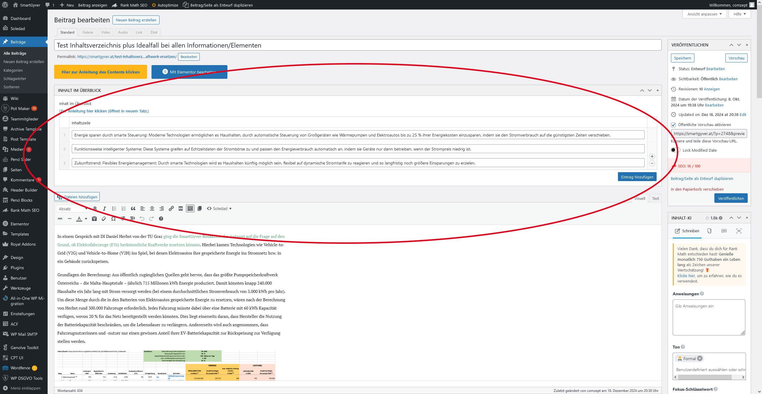 Eine zusammenfassende Kurzangabe in einigen wenigen Punkten ist für den Leser und die Suchmaschine von Vorteil. Damit die Umsetzung vereinfacht wird, gibt es eine Feldgruppe über dem Hauptinhalt. Dort können so viele Felder angelegt werden, wie der Verfasser des Artikels für nötig hält. Allerdings sollte die Anzahl eher geringer gehalten werden, um den eigentlichen Inhalt nicht zu konterkarieren.